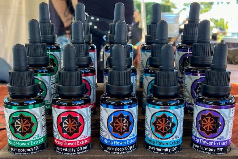 Etheridge Organics of Santa Cruz, California, offers organic hemp liquid extracts. I like that these formulations combine herbs with hemp extract to assist the body’s healing and health-maintenance functions. There are five blends, each available in one-fluid-ounce glass bottles. The first variety, Pure Potency, is a straight-up hemp tincture without herbs; it contains the extract of flowers from the hemp plant, organic vegetable glycerine, and organic grape ethanol extract. The remaining four blends feature that same hemp-glycerine-ethanol mix, with the addition of different herbs, respectively, for each variety: Pure Harmony (organic holy basil, organic coriander) to help the body manage physical, emotional, and spiritual stress and pain; Pure Serenity (organic skullcap) to help it curb anxiety and nerve pain; Pure Sleep (organic chamomile, organic valerian, organic spearmint oil) to help it ease anxiety (small doses) and induce deep, restful sleep (larger doses); and Pure Vitality (organic gotu kola, organic nettles, organic cinnamon oil) to help rejuvenate the body and mind by supporting the nervous and circulatory systems and brain function. I purchased a bottle of Pure Harmony, and I like this formulation much. It has a pleasant taste and I do feel nicely calm and balanced for hours after taking it. Etheridge Organics uses hemp grown on an organic-certified farm, and the formulations’ other ingredients are certified organic, states the company’s website. The company uses biophotonic (i.e., violet) glass bottles to block ultraviolet light from passing through, thereby “reduc[ing] the risk of any microbiological contamination after the bottle is opened,” states the website. Etheridge Organics combines the capital of singer-songwriter Melissa Etheridge and the herbalism expertise of Jozee and D’Angelo Roberto. The latter have more than a quarter century of study in herbalism; they founded a medicinal cannabis company back in 2014.